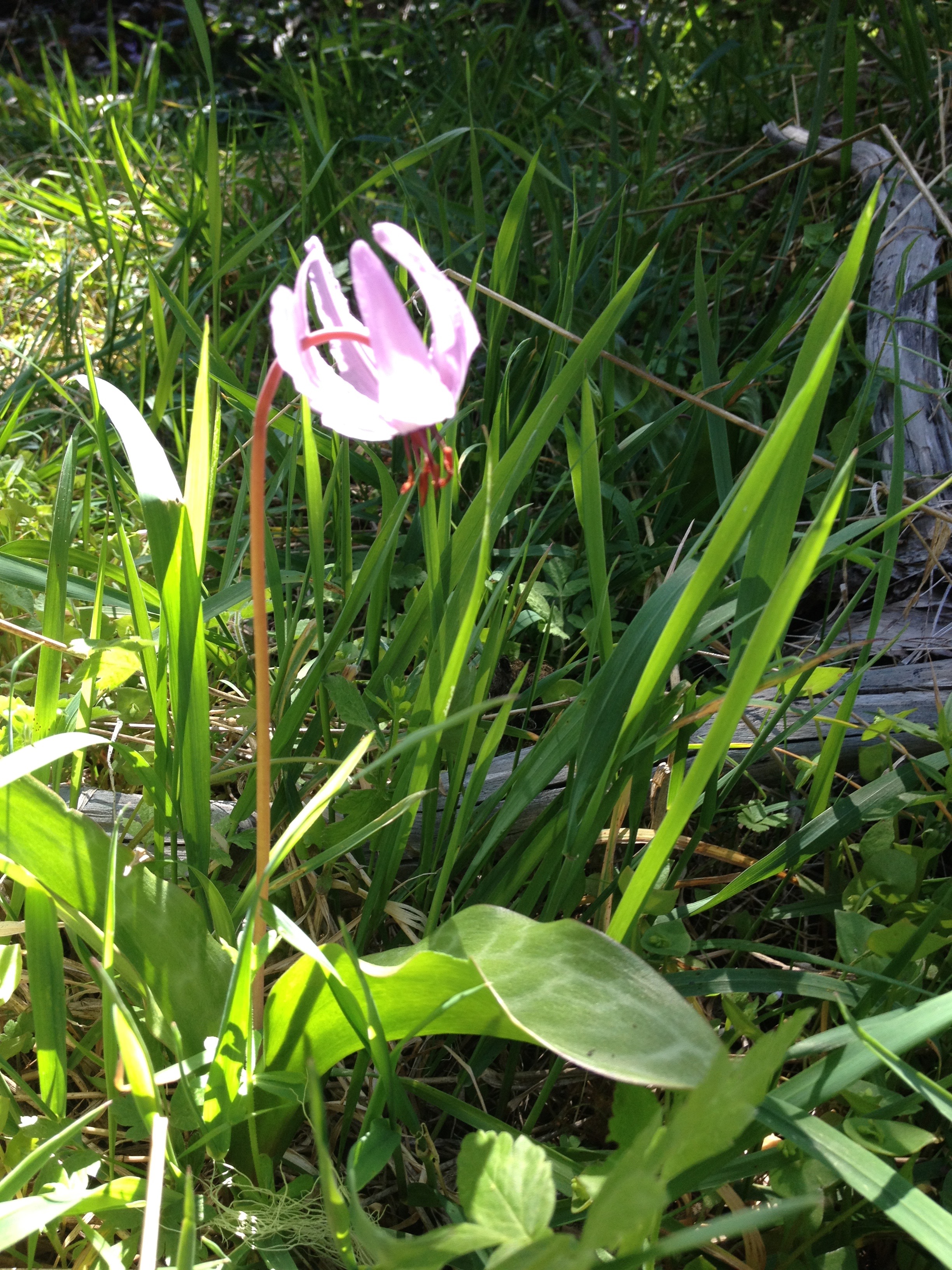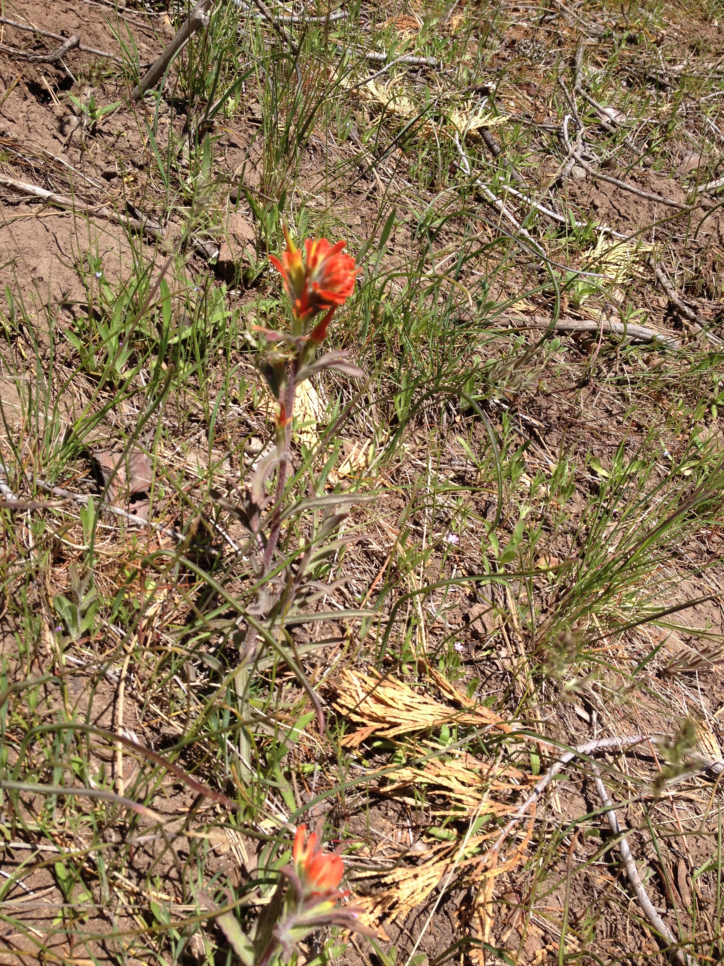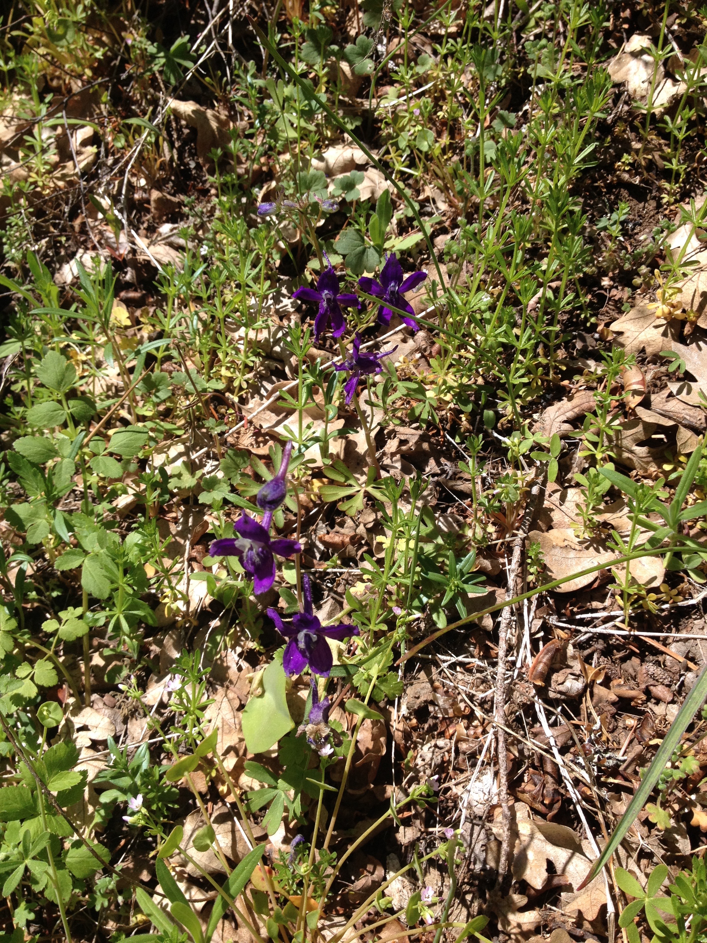 The sky was a clear blue and the view only got better and better as we climbed to the outcrop of rocks at the top. Our ascent was slow as I made frequent stops to take pictures of the large variety of wild flowers that grew next to the trail. Most of the flowers were new to me but I did recognize wild strawberries and Indian Paint Brush. I later discovered that the delicate purple flowers I had thought were a type of violet were actually Purple Larkspur. We also discovered a plant that at first glance looked like mint but had no traces of mint scent when picked. I crushed a leaf between my fingers and was rewarded with a subtle lemon smell. I believe it was Lemon Balm but it had the most gentle aroma that I’ve ever experienced.