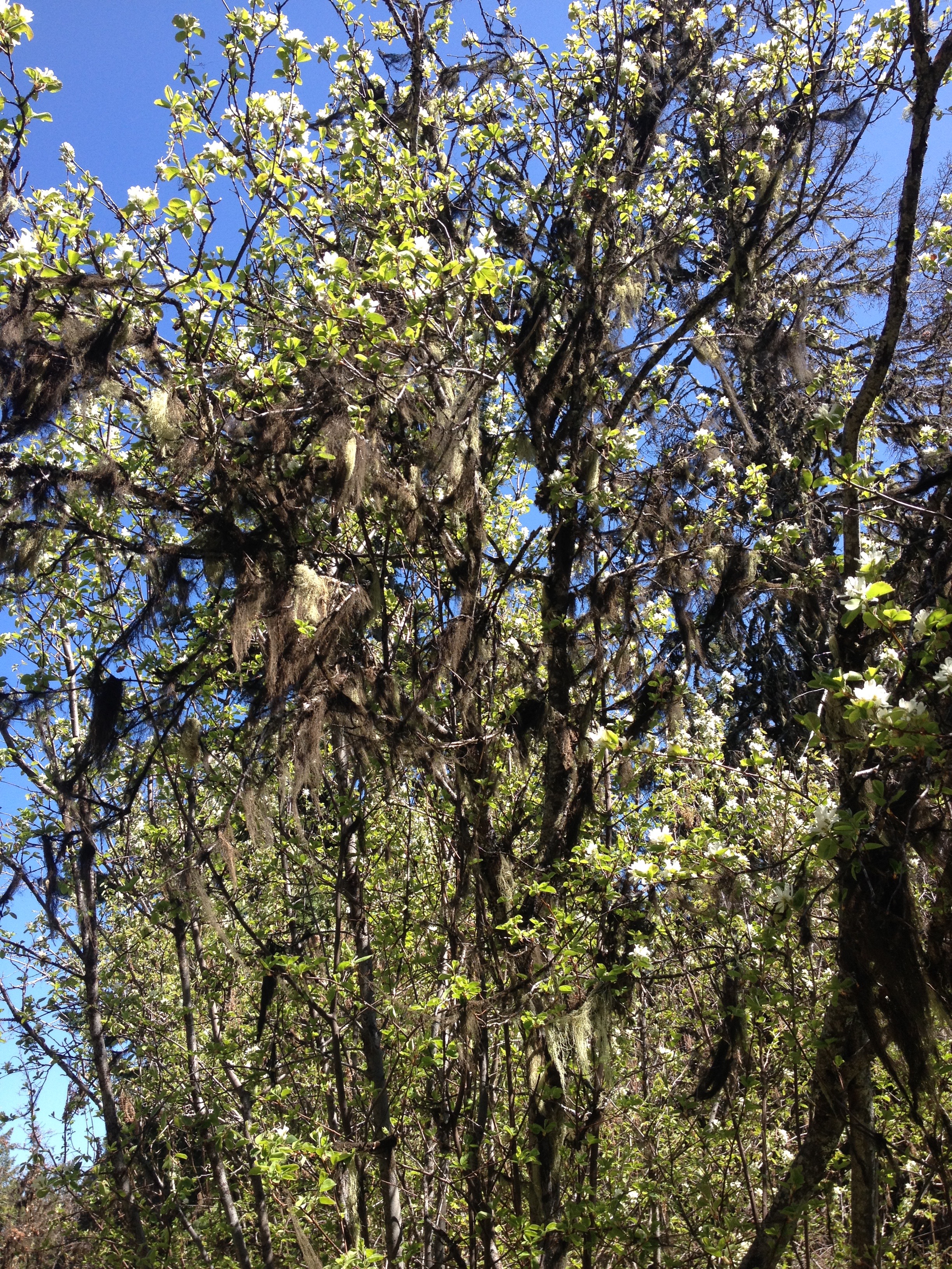 With my limited knowledge of foliage I was not able to identify most of the foliage that we came across. However, I did recognize the manzanita trees, with their peeling chocolate colored bark, that were high in number. There was also a diverse number of evergreen trees including White Pine and Incense Cedar. I recognized Sagebrush and Western Junipers as well. Among these varied trees there hung many different types of moss and lichen, none of which, sadly, I could name but enjoyed their bright colors and beard like consistency.