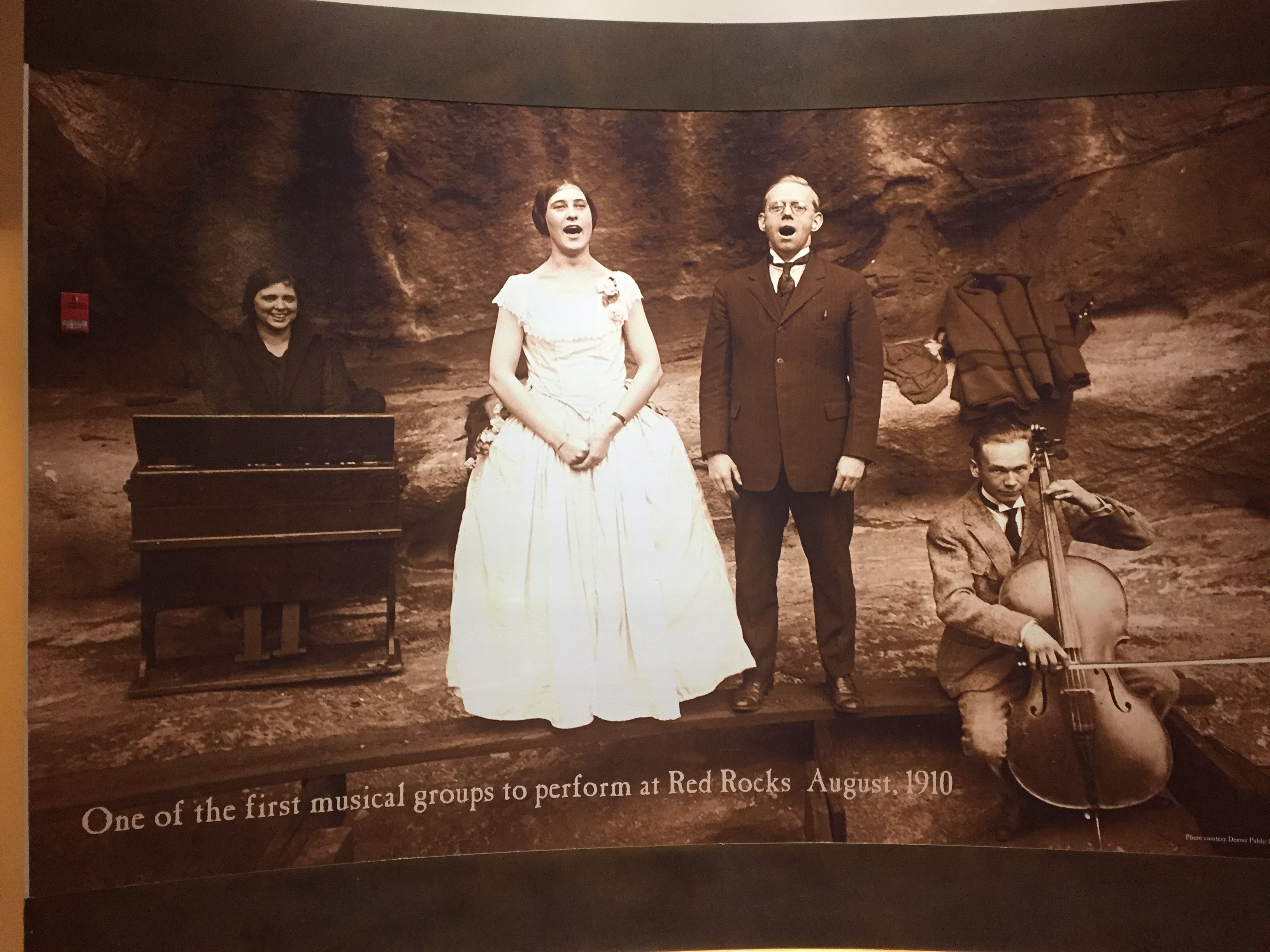 While I was at Red Rocks I managed to walk through their hall of fame. It’s a short hallway that has a list of every single concert that has occurred since the amphitheater opened in June of 1941. I was quick to find the dates for when The Beatles played (August, 1964) and Mumford and sons (October, 2012). I was extremely impressed with the amount of artists as well as the huge names. People like Ella Fitzgerald, Santana, Sting, The Go-Go’s, The Grateful Dead, and U2, to name just a few, came here. There was one photo that showed people playing music in the area of Red Rocks in 1910. There is clearly a rich history and love for music in that place which makes me ache to be there for more shows and more experiences.