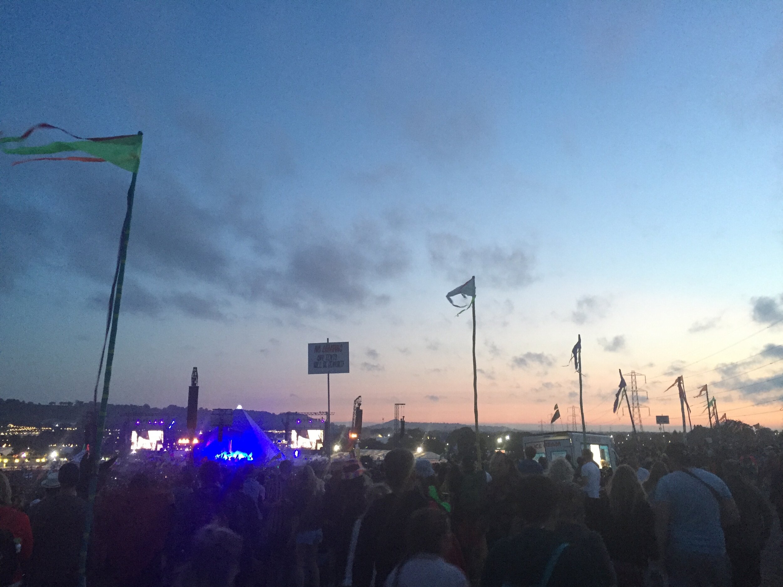The Killers were Saturday night’s headliner, and I managed to find a spot on the road above the Pyramid Stage where there were slightly fewer people. I haven’t listened to The Killers since middle school, so watching them live was a blast from the past. Those guys still got it! While I was enjoying the show in front of me I was also loving the show behind. A group of very drunk Killers fans who were dancing in a circle and singing at the top of their lungs.