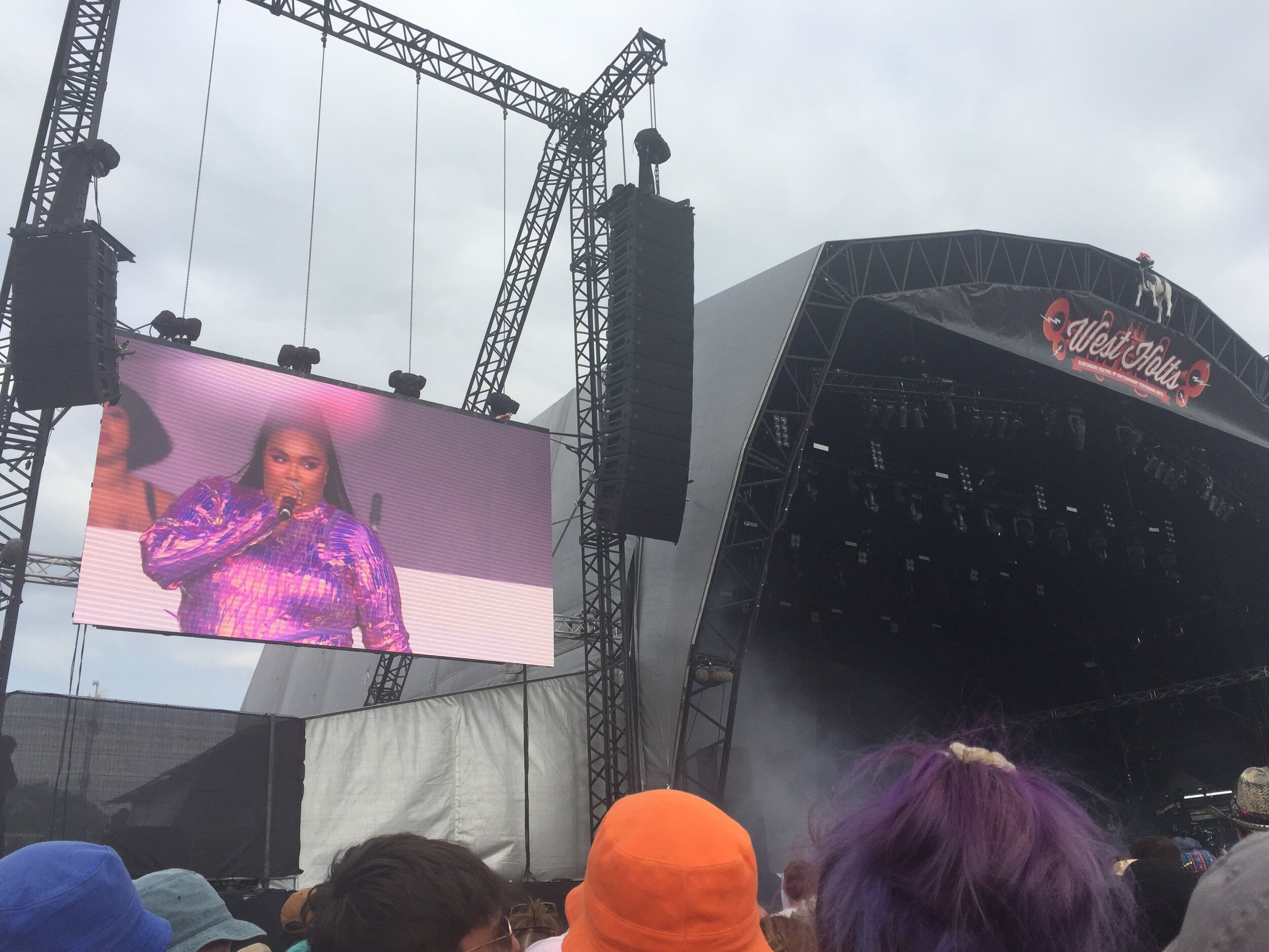 After Maggie finished, I met up with my friend Lucy to catch Lizzo’s set at the West Holts stage. I didn’t grow up going to church, but if church was anything like going to a Lizzo concert, I would be there every Sunday morning. Lizzo’s unapologetic self-love and positive attitude is infectious. Not only did she put on an incredible show with bodacious back-up dancers and booty shaking beats, she raised the crowd’s mood with her powerful words. Lizzo preached to us about the magic of loving yourself, knowing your self-worth, and feeling yourself all day long. During her performance, she told the audience to say a mantra of self-love to ourselves, “I love you! You are beautiful! And you can do anything!”, then turn to our neighbor and repeat it to them and then say it to Lizzo. This woman knows how to work a crowd and I left feeling lifted and inspired.