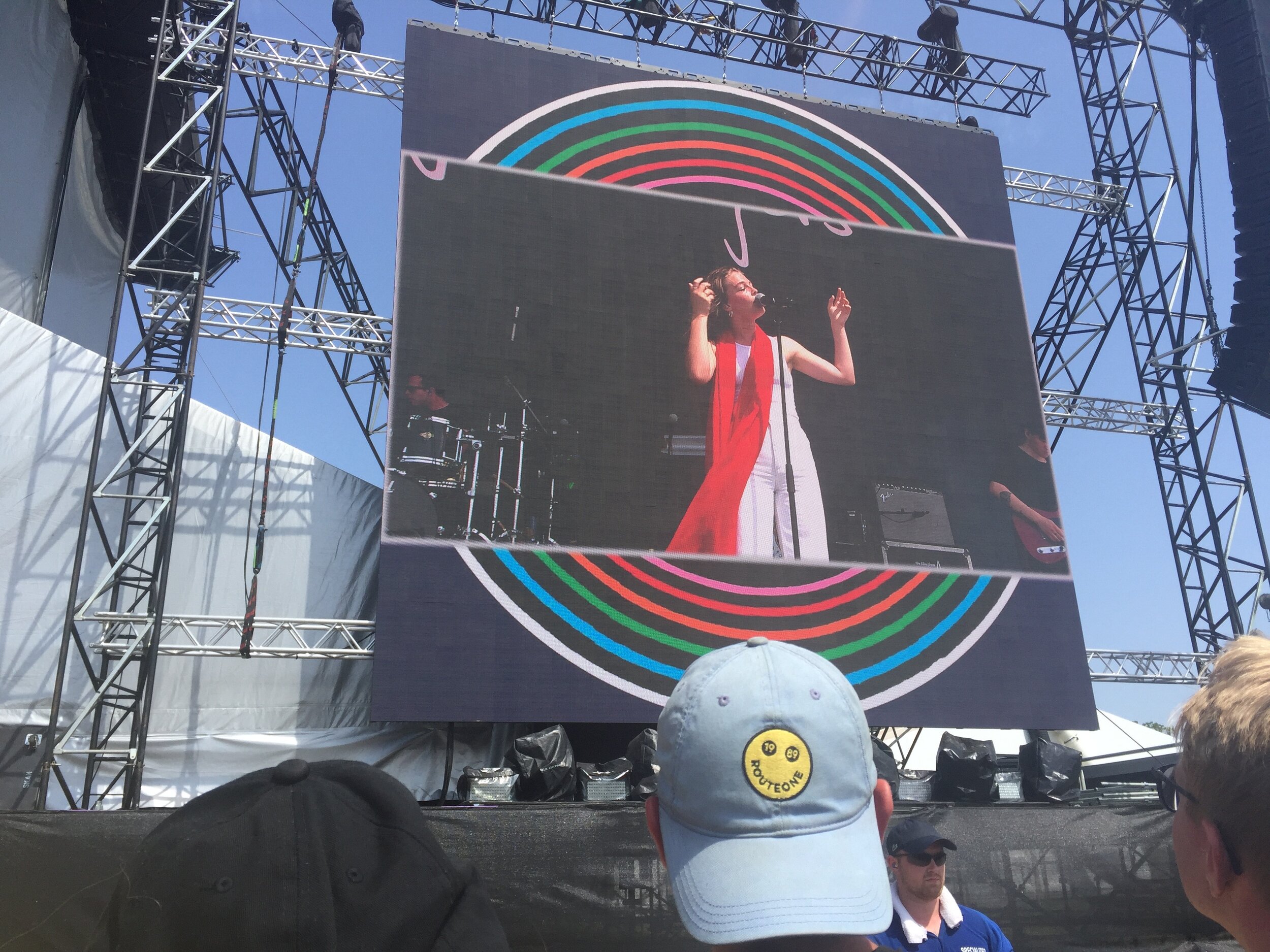 Saturday was set to be another hot day, so I spent most of the morning in the Croissant Neuf tent listening to a trio play some good ‘ol fashioned bluegrass. When I’d heard enough of the yodely-twangy music, I meandered towards the Other Stage (yes, that’s its actual name), found myself some lunch, and sat in another patch of shade to fuel myself before watching Maggie Rogers’ performance.
